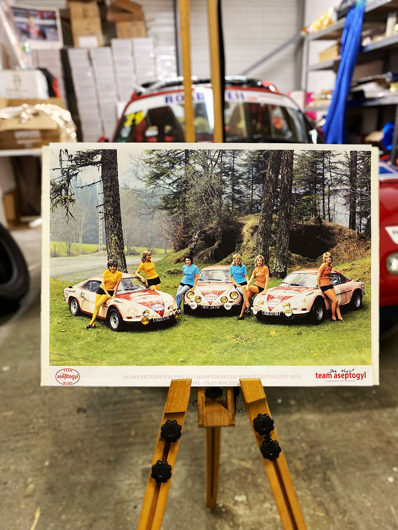 Elle reprend les fameuses 3 Alpines Berlinettes Aseptogyl aux immatriculations en 38 (Isère) et les 6 pilotes du lancement (Françoise Conconi, Annick Girard, les deux soeurs Desvignes, Christine Dacremont)