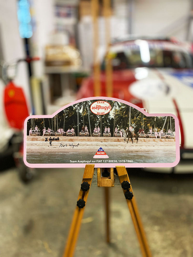One of the famous 12 Rally plaques commemorating the 50th anniversary of Team Aseptogyl (1971-2021).