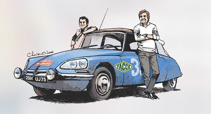 Original illustration of the 1969 DS “Coupé Maroc” by Bob Neyret and Jacques Terramorsi which forms the illustration for the title page of the comic strip “Pair of Aces for a DS”