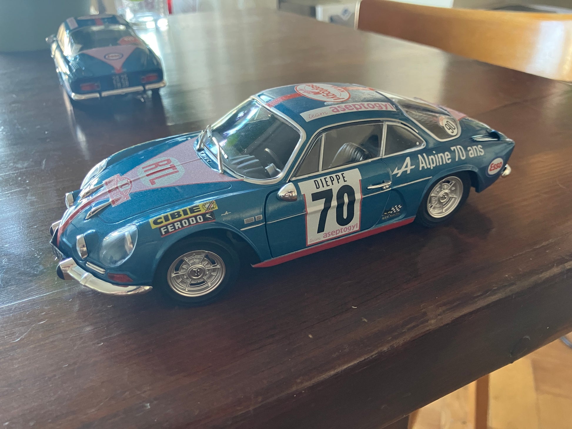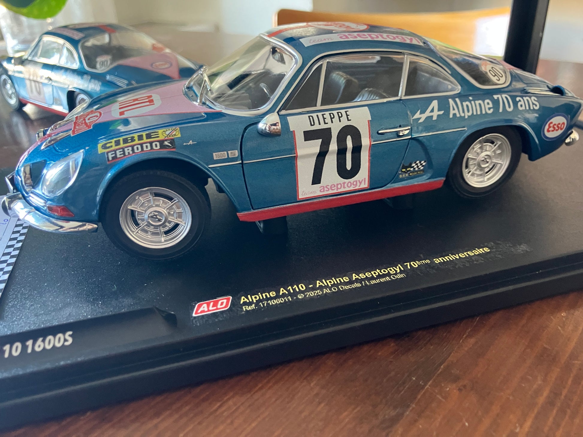 le dernier lot de 2 X A110 bleues Berlinettes , solido, toutes faites mains, décalcomanies spéciales par ALO DECALS de la collection Team Bob Neyret.