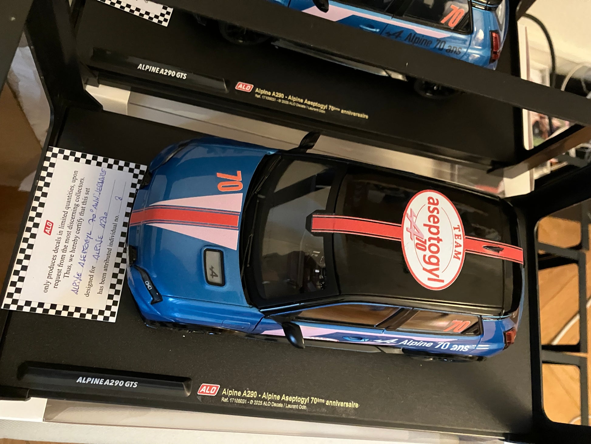 le dernier lot de 5X A290 bleues GTS , solido, toutes faites mains, décalcomanies spéciales par ALO DECALS de la collection Team Bob Neyret.
